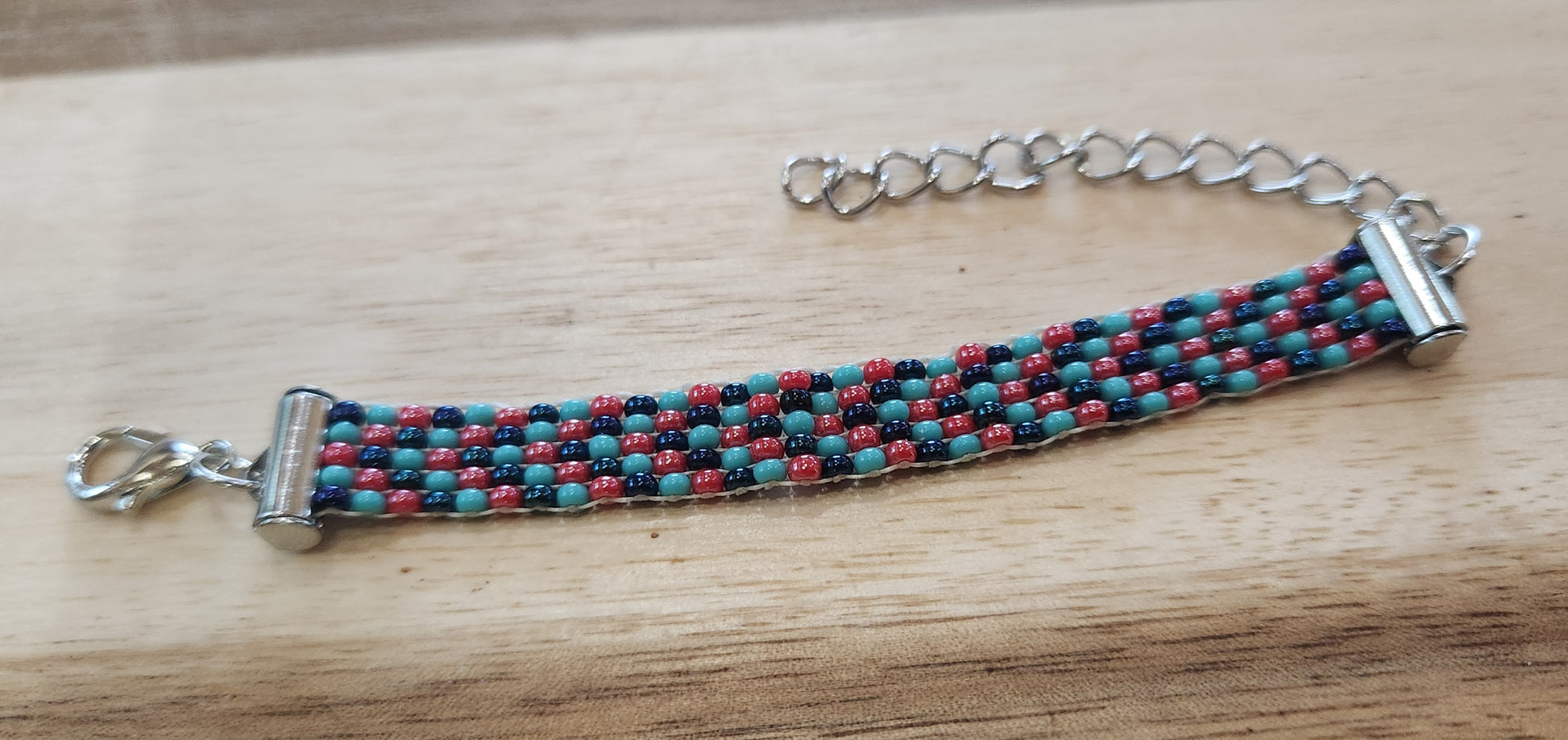 This cute smaller bead bracelet was handmade by Becca, inspired by the mermaid sheen to the bead color combos!