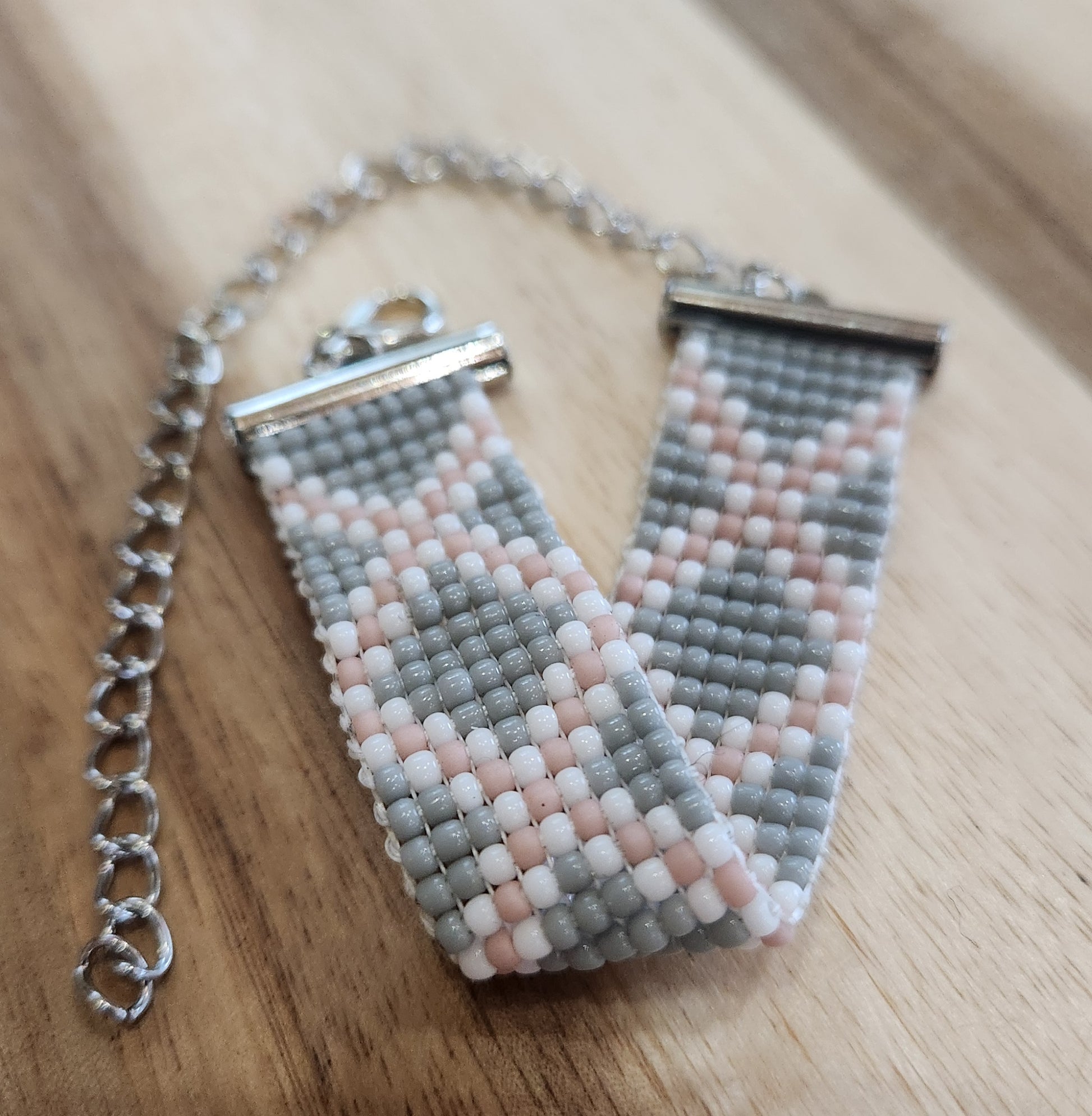 Handmade by Becca, flying by the seat of her pants for a pattern. This glossy little bracelet with silver clasps is bound to shine on your wrist!